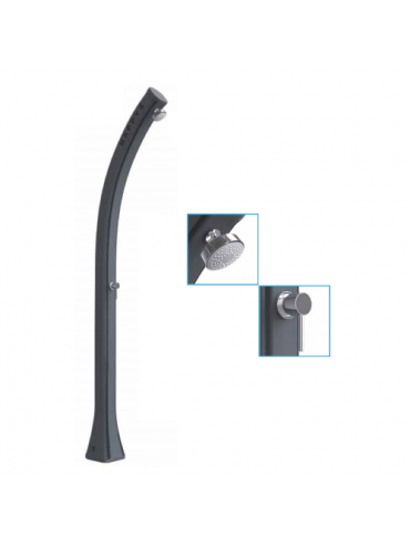 Ducha solar en PE HD completamente ecológica, ideal para los ambientes marinos muy azotados por el viento. Resistente al salitre, la cal, pequeños golpes, etc.